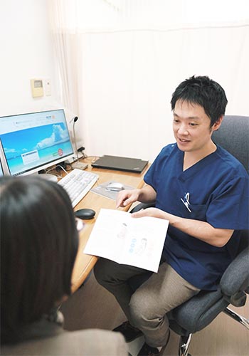 問診票にご記入いただいた内容を元に、医師が診断し、治療方法のご説明をいたします。